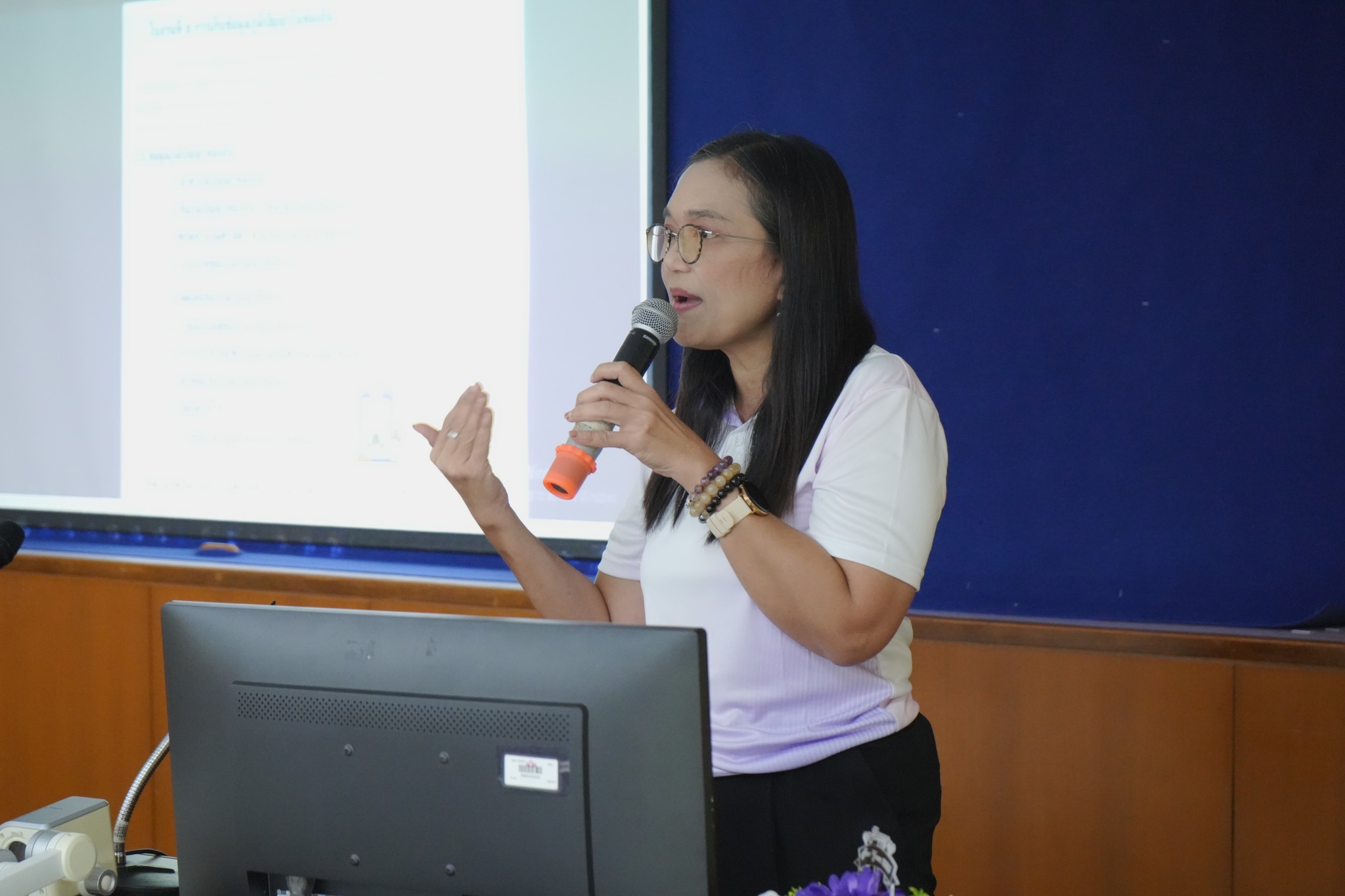 โดยมี รศ.ดร.สุวิทย์ วุฒิสุทธิเมธาวี รักษาการแทนรองอธิการบดีมหาวิทยาลัยวลัยลักษณ์ ในฐานะผู้อำนวยการศูนย์ประสานงาน อพ.สธ.-มวล. กล่าวแนวทางในการดำเนินงานวิจัยและบริการวิชาการ อพ.สธ. และมี รศ.ดร.ฉัตรชัย กัลยาณปพน รักษาการแทนผู้อำนวยการ อุทยานพฤกษศาสตร์ ในฐานะรองผู้อำนวยการศูนย์ประสานงาน อพ.สธ.-มวล. บรรยายในเรื่องการเชื่อมโยงระหว่างงานวิจัยและการดำเนินงาน 9 ใบงาน และทีมวิทยากรจากศูนย์ประสานงาน อพ.สธ.-มวล. เป็นวิทยากรผู้ช่วย บรรยายในหัวข้อต่างๆ