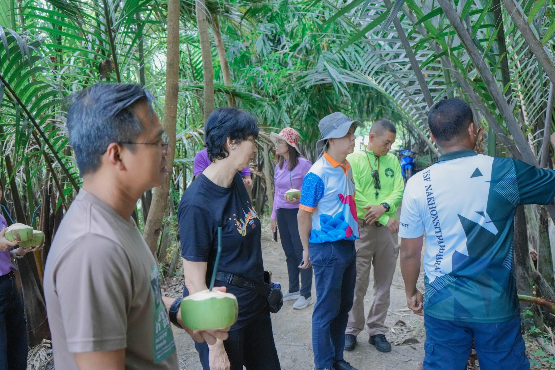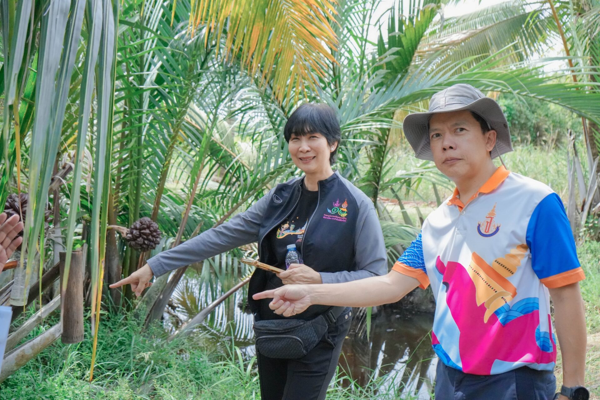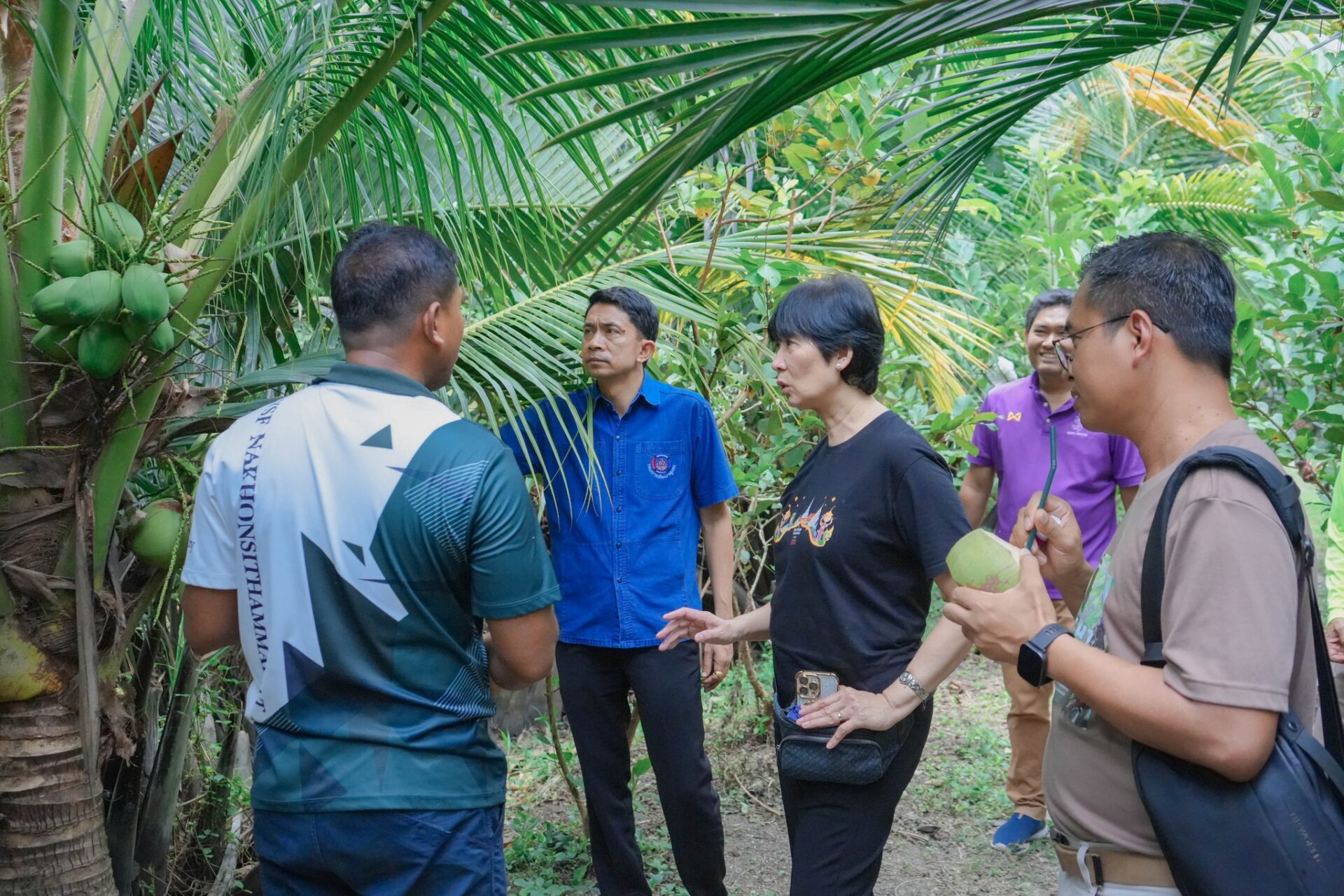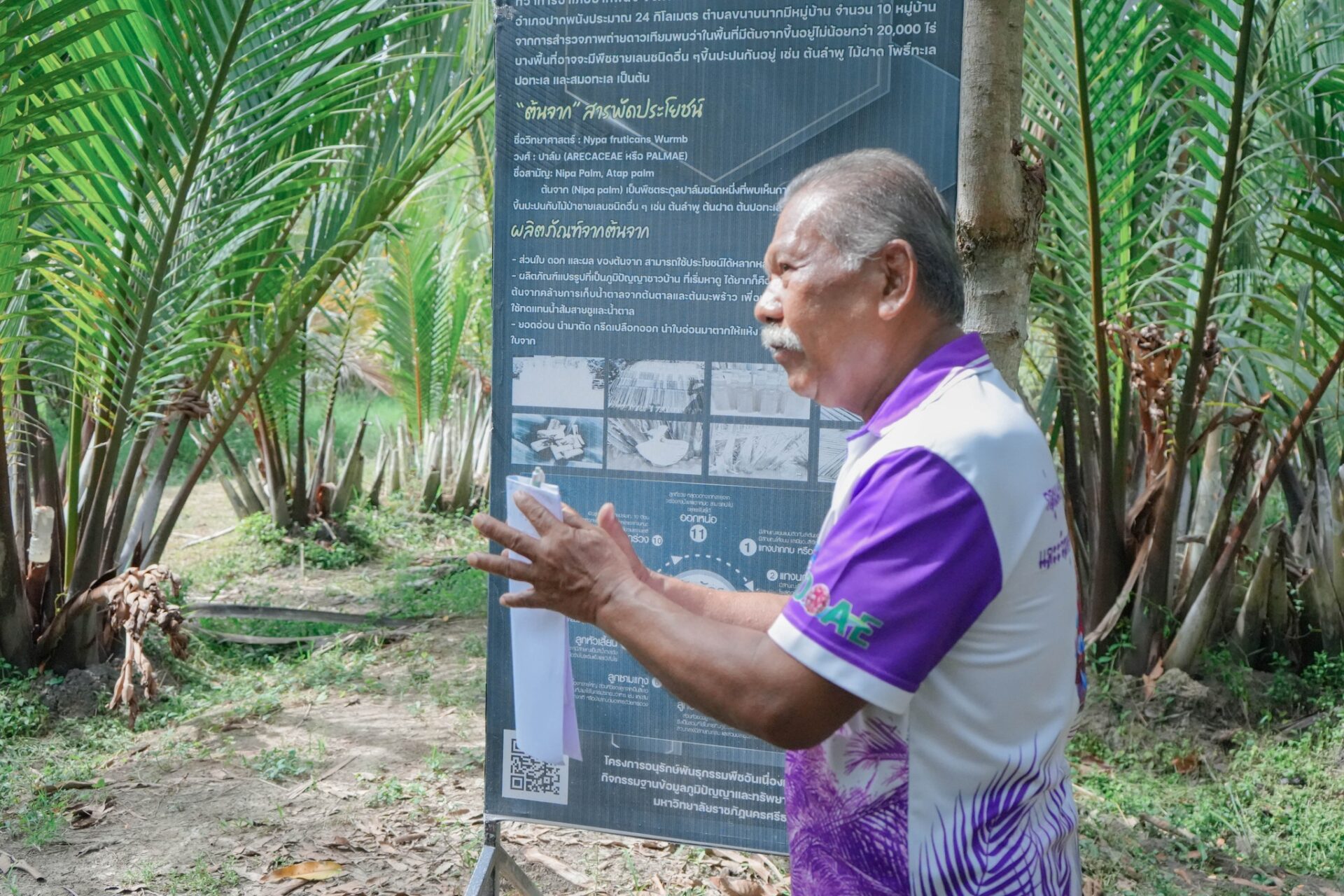 การลงพื้นที่ครั้งนี้นำโดย รศ.ดร.ฉัตรชัย กัลยาณปพน รักษาการแทนผู้อำนวยการอุทยานพฤกษศาสตร์, ผศ.ดร.ไพโรจน์ นวลนุ่ม รักษาการแทนรองผู้อำนวยการอุทยานพฤกษศาสตร์ และเจ้าหน้าที่ศูนย์ประสานงาน อพ.สธ.-มหาวิทยาลัยวลัยลักษณ์ เพื่อติดตามความก้าวหน้าและแลกเปลี่ยนเรียนรู้ด้านการอนุรักษ์และใช้ประโยชน์จากพืช “จาก” ซึ่งเป็นทรัพยากรท้องถิ่นที่มีคุณค่าทางเศรษฐกิจและวัฒนธรรม