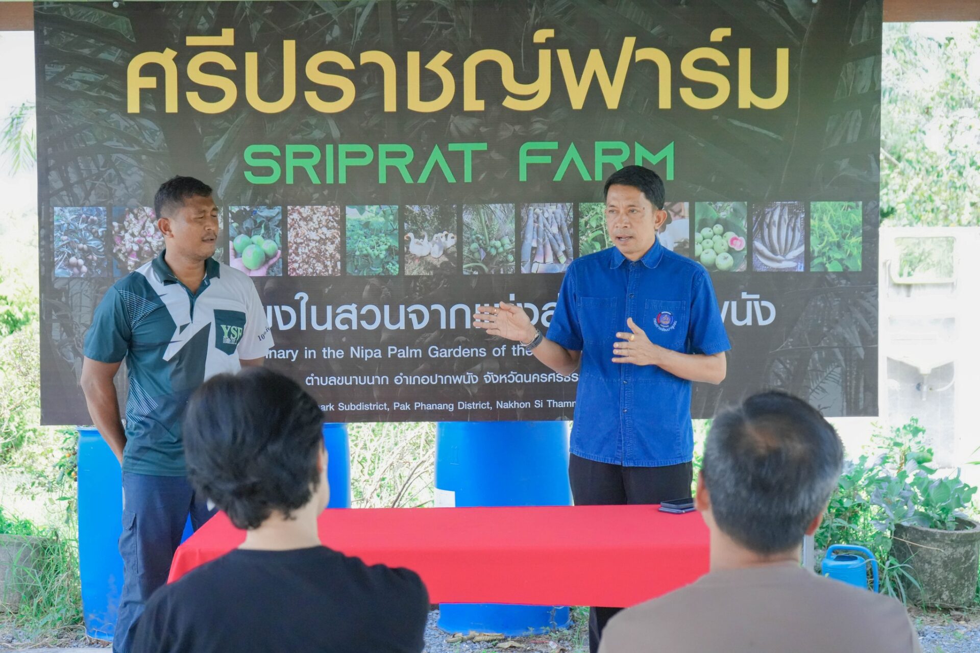2. ศรีปราชญ์ฟาร์ม บ้านเกาะฝ้าย หมู่ที่ 7 ตำบลขนาบนาก อำเภอปากพนัง ดำเนินการโดย นายศุภชัย มีปลอด เกษตรกรรุ่นใหม่ที่ทำเกษตรผสมผสานแบบอินทรีย์ มีการปลูกจากและพืชอื่น ๆ เช่น มะพร้าว ฝรั่ง ควบคู่กับการเลี้ยงสัตว์ เช่น ปลา เป็ด แพะ และกวาง สร้างความหลากหลายทางชีวภาพและความมั่นคงทางอาหารในพื้นที่