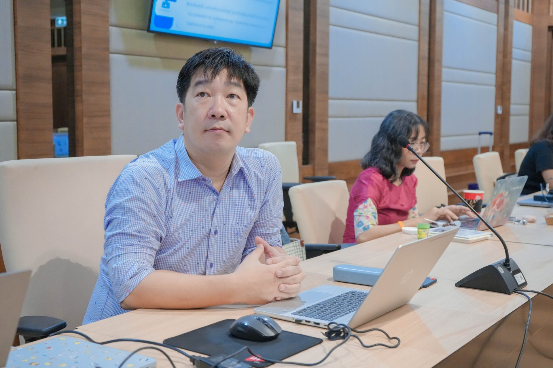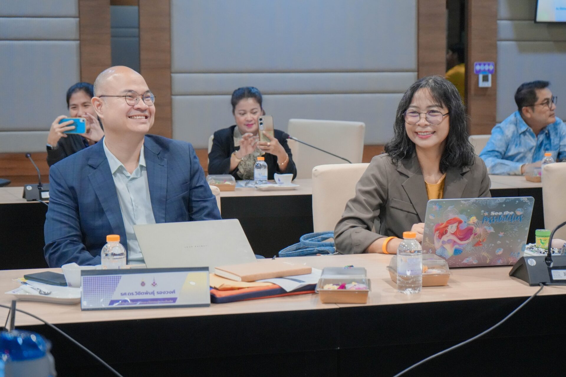 ต่อจากนั้นเป็นการนำเสนอรายงานผลการดำเนินงานโครงการวิจัยและบริการวิชาการทุน อพ.สธ. รอบสิ้นสุดปิดโครงการ ประจำปีงบประมาณ 2568 โดยมีคณะผู้ทรงคุณวุฒิเข้าร่วมรับฟังและให้ข้อเสนอแนะ ได้แก่