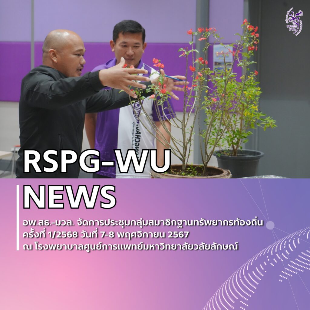 วันที่ 7-8 พฤศจิกายน 2567 ศูนย์ประสานงาน อพ.สธ.-มหาวิทยาลัยวลัยลักษณ์ จัดการประชุมกลุ่มสมาชิกฐานทรัพยากรท้องถิ่น ครั้งที่ 1/2568 หลักสูตร การบริหารและการจัดการ งานที่ 1 งานที่ 2 และ งานที่ 3 ณ ห้องประชุมภัทรธรรมาภรณ์ ชั้น 9 อาคาร B โรงพยาบาลศูนย์การแพทย์มหาวิทยาลัยวลัยลักษณ์ อำเภอท่าศาลา จังหวัดนครศรีธรรมราช